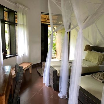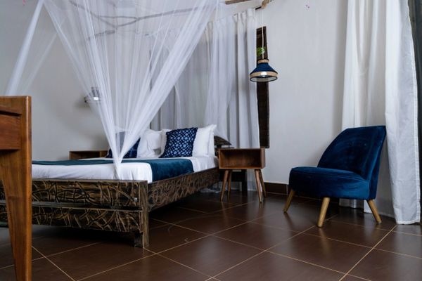 This is our most elaborate and spacious cottage overlooking Lake Victoria. It's cosy and romantic featuring king size bed, spacious bathroom with shower, lounge and balcony.